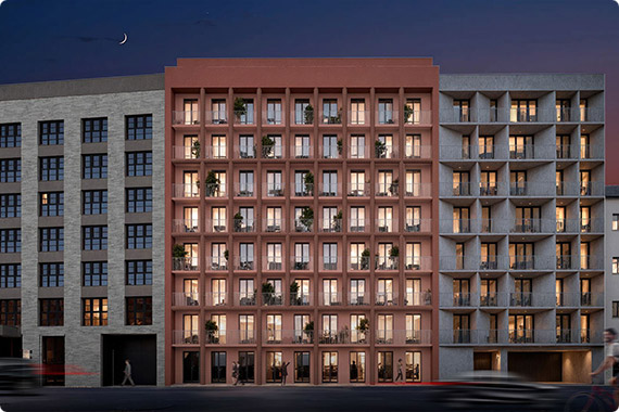 Na Promenádě nabízí 125 moderních bytů a ateliérů navržených pro každou životní etapu. Od útulných 1+kk až po prostorné 5+kk – v těsné blízkosti centra Brna, v dynamicky rostoucí čtvrti Trnitá.