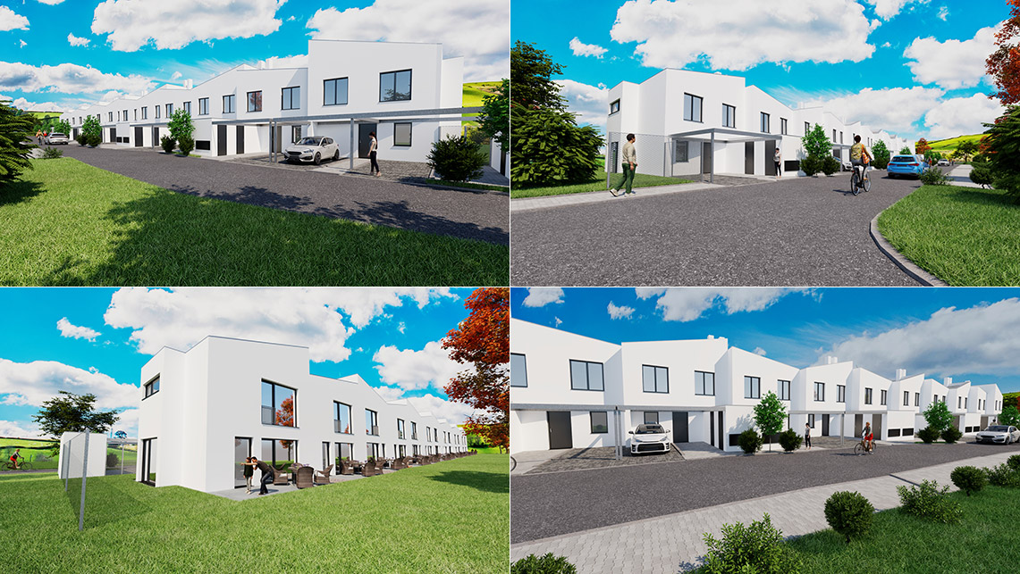 Projekt RD Ivanovice představuje skvělou nabídku třinácti dvoupodlažních nepodsklepených řadových domů. Každý z nich má obdélníkový půdorys a hlavní fasády orientované na sever a jih. Rodinné domy jsou doplněny nezastřešenými pergolami, které nejenže dodávají každému domu charakter, ale také vytvářejí útulné vstupní prostory.
